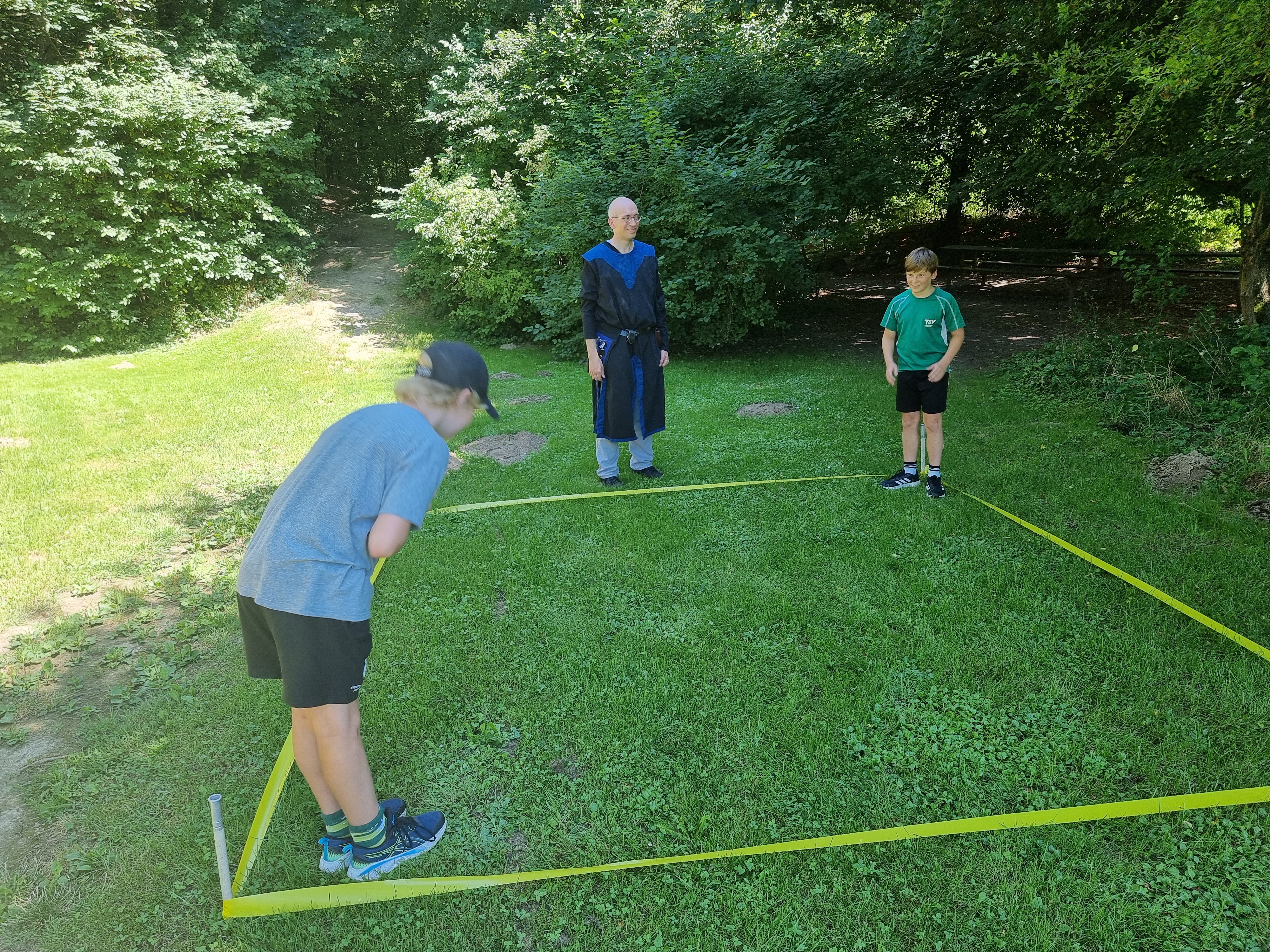 In den heissen Tagen des 10. Augustes, im Jahre 2024, finden sich acht tapfere Jünglinge auf dem Robinsonspielplatz in Düdingen ein. Heute wollen sie sich in den Disziplinen Armbrust, Schwert- und Ringkampf messen, im Streit um den grossen Gewinn: Die goldene Statuette des Ritters der Waagschale. Der unbarmherzigen Sonne trotzend, stellen sich die Acht den Unterweisungen der anwesenden Rittmeister. So erhalten alle eine Einführung in die Grundlagen der heute ausgetragenen Disziplinen und können mit dem notwendigen Wissen in den Wettkampf starten.